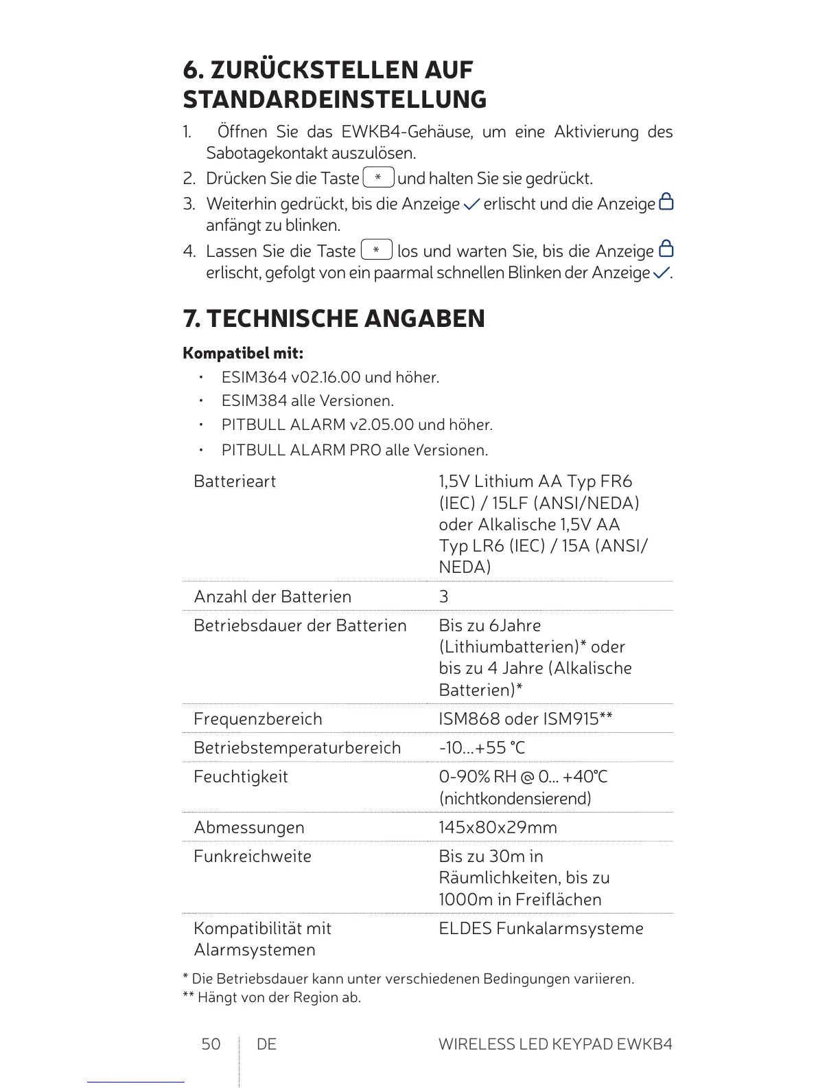 Betriebsdauer der Baterien Bis zu 6Jahre