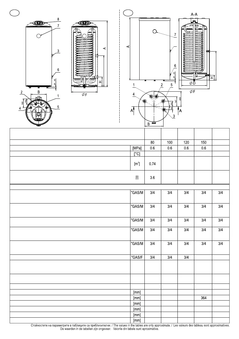 Вместимост на топлообменника / Heat exchanger volume / Volume de