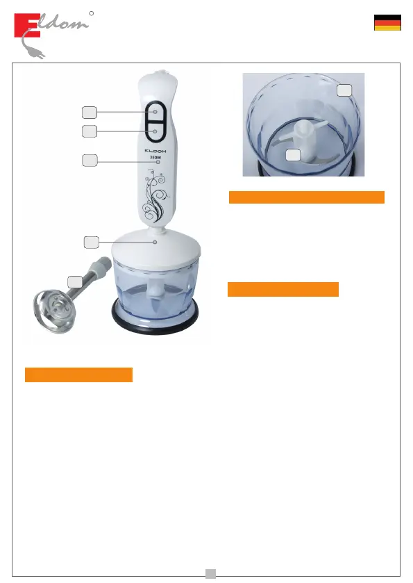 Zerkleinerer arbeitet so lange, wie ein von den Druckknöpfen eingepresst ist. Mit Hilfe des