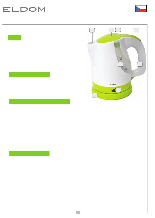 kontrolkou (8). Po ukončení ohřevu vody se konvice automaticky vypne.