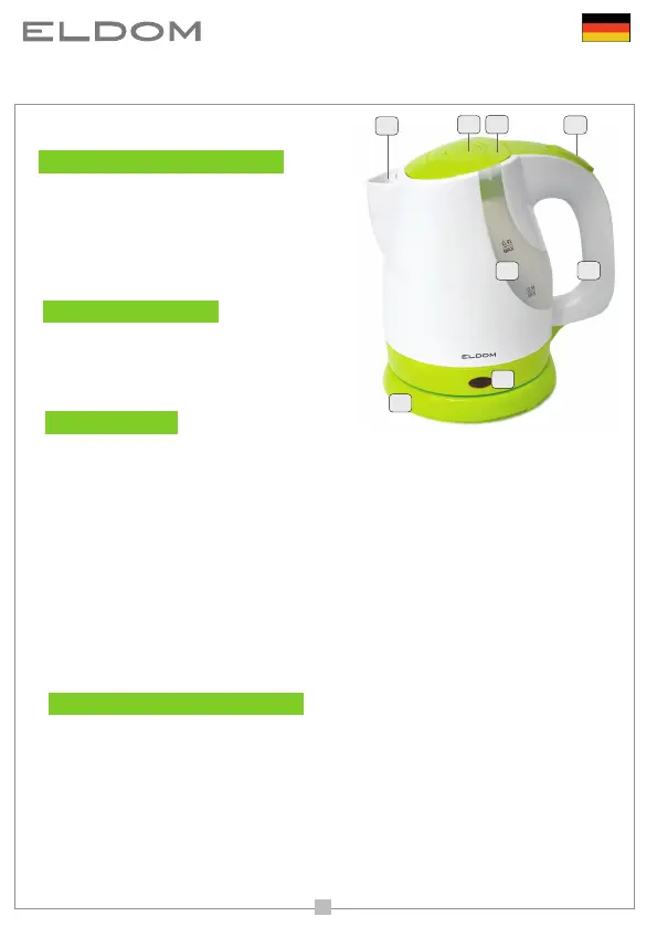 - den Wasserkocher ausschalten und den Stecker aus der Steckdose herausnehmen
