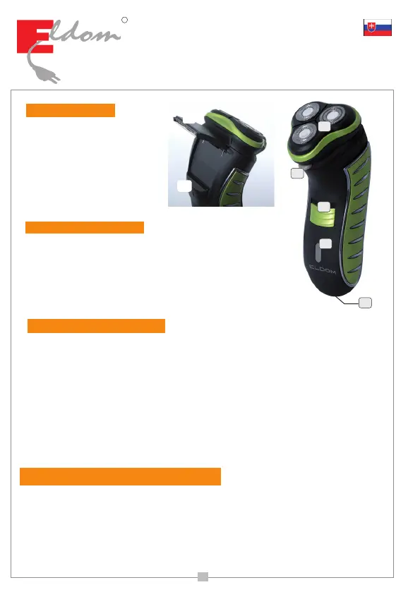 - zariadenie je vybavené zastrihávačom (6) na strihanie brady azapína sa tlačidlom (7)
