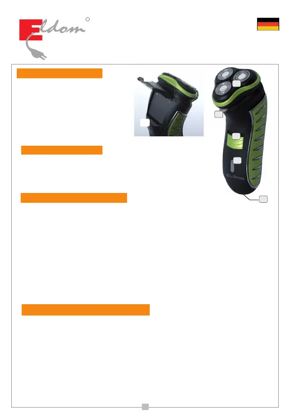 - Der Rasierapparat wird in Betrieb gesetzt, indem der Schalter (3) umgeschaltet wird.