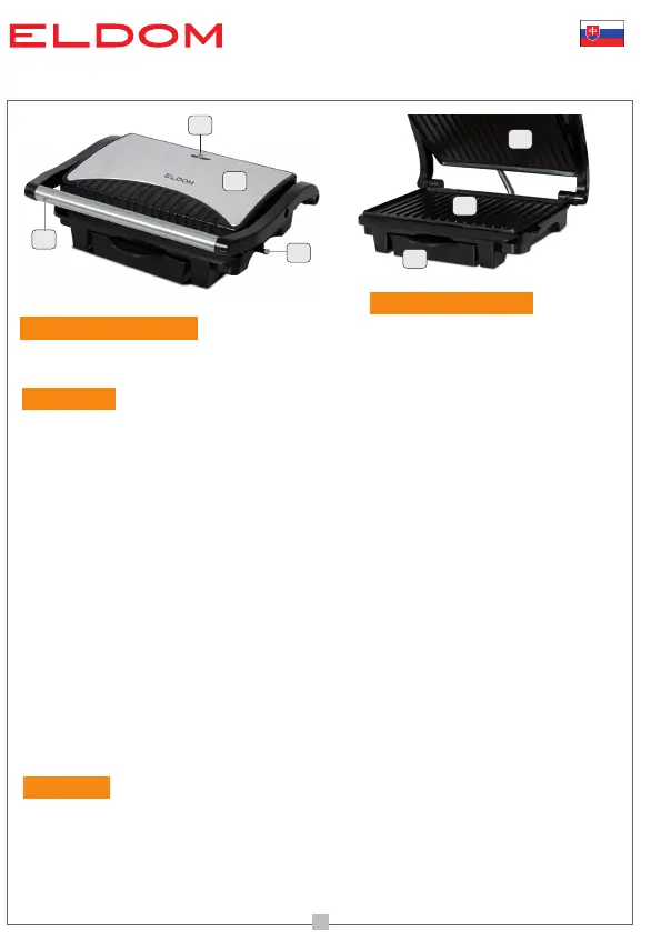 - Pohyblivý kryt (2) umožňuje grilovanie jedál srôznou hrúbkou.