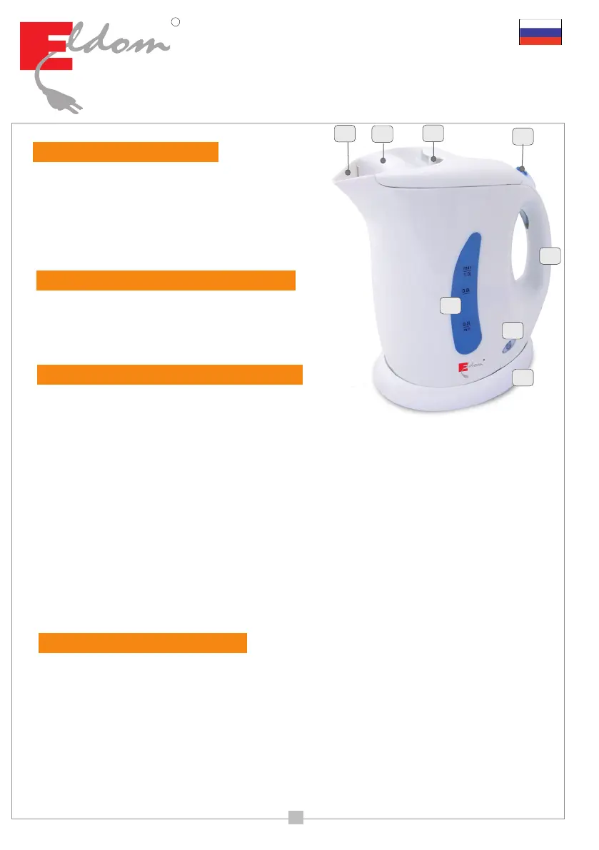 Чайник можнo наполнять водой через носик (4) или же после открытия крышки (3).