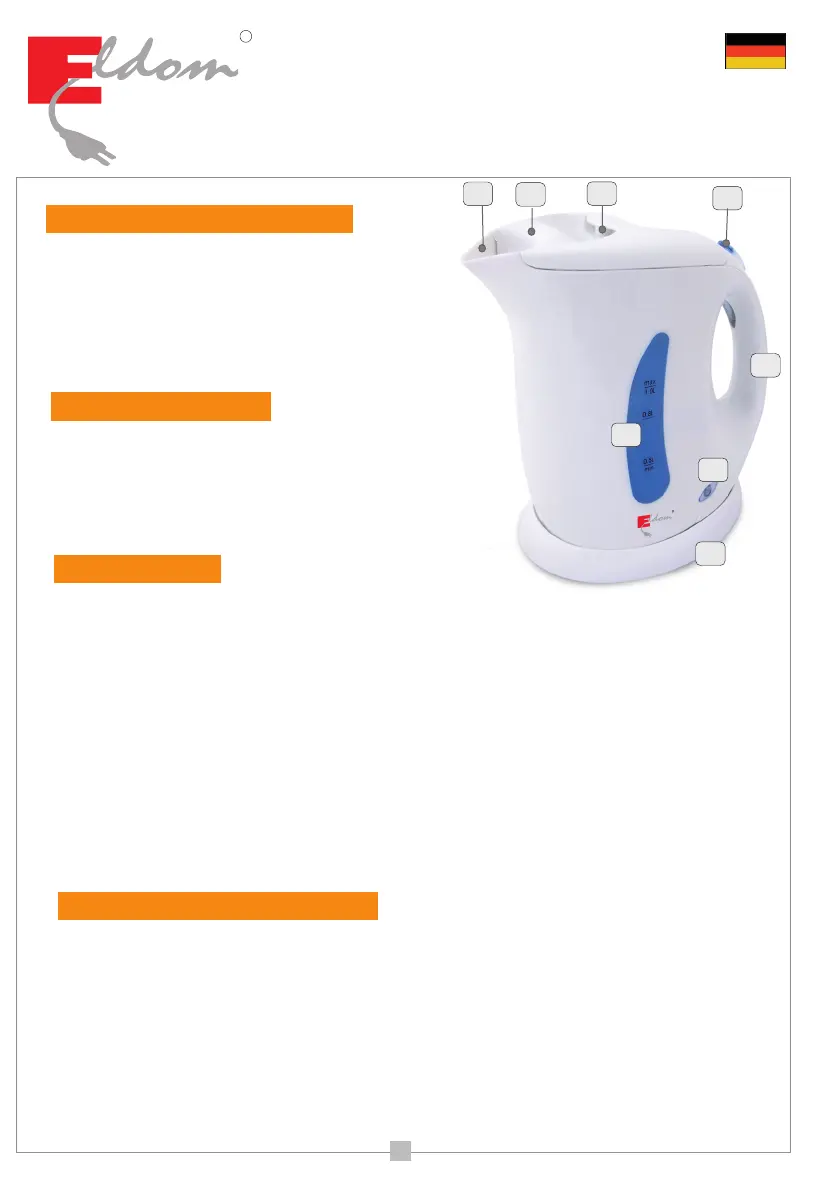 - den Wasserkocher ausschalten und den Stecker aus der Steckdose herausnehmen