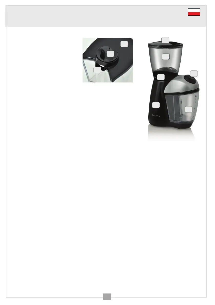- nacisnąć włącznik (4) aby zmielić kawę. Urządzenia nie używać dłużej niż 60 sekund aby uniknąć
