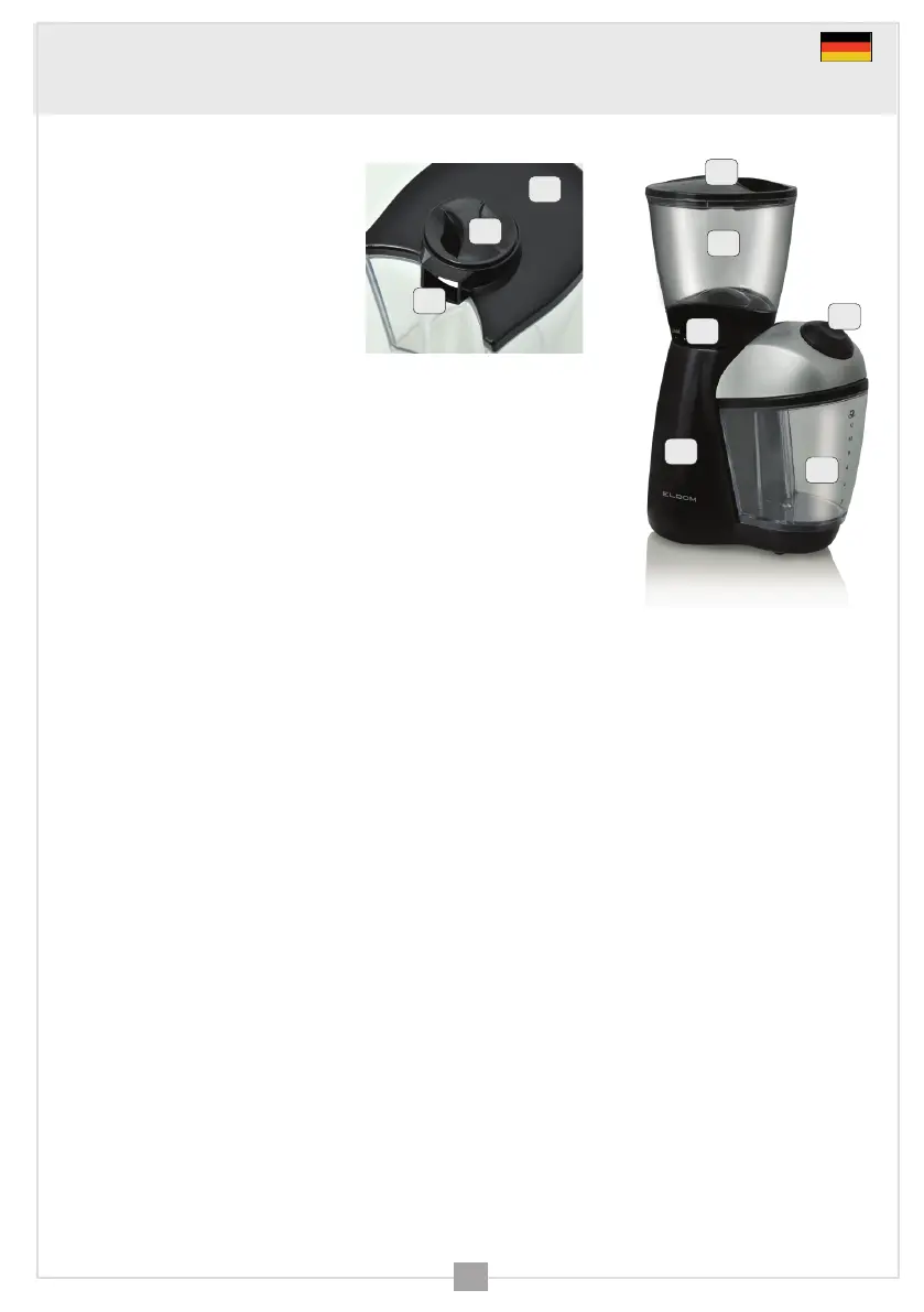 - Drücken Sie den Schalter (4), um den Kaffee zu mahlen. Das Gerät soll nicht länger als 60 Sek. gebraucht