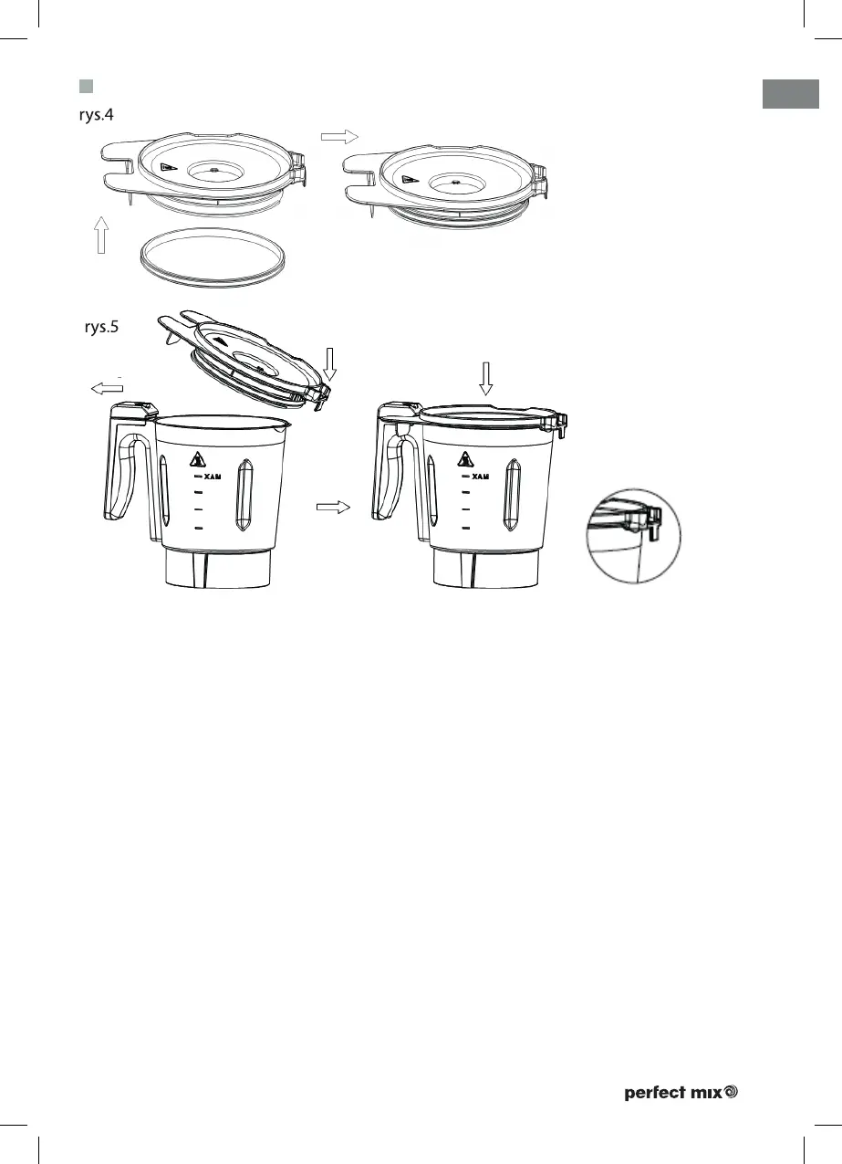 1. Pokrywę (2) z zamontowaną uszczelką ( 3) (rys.4) należy nałożyć na naczynie miksujące