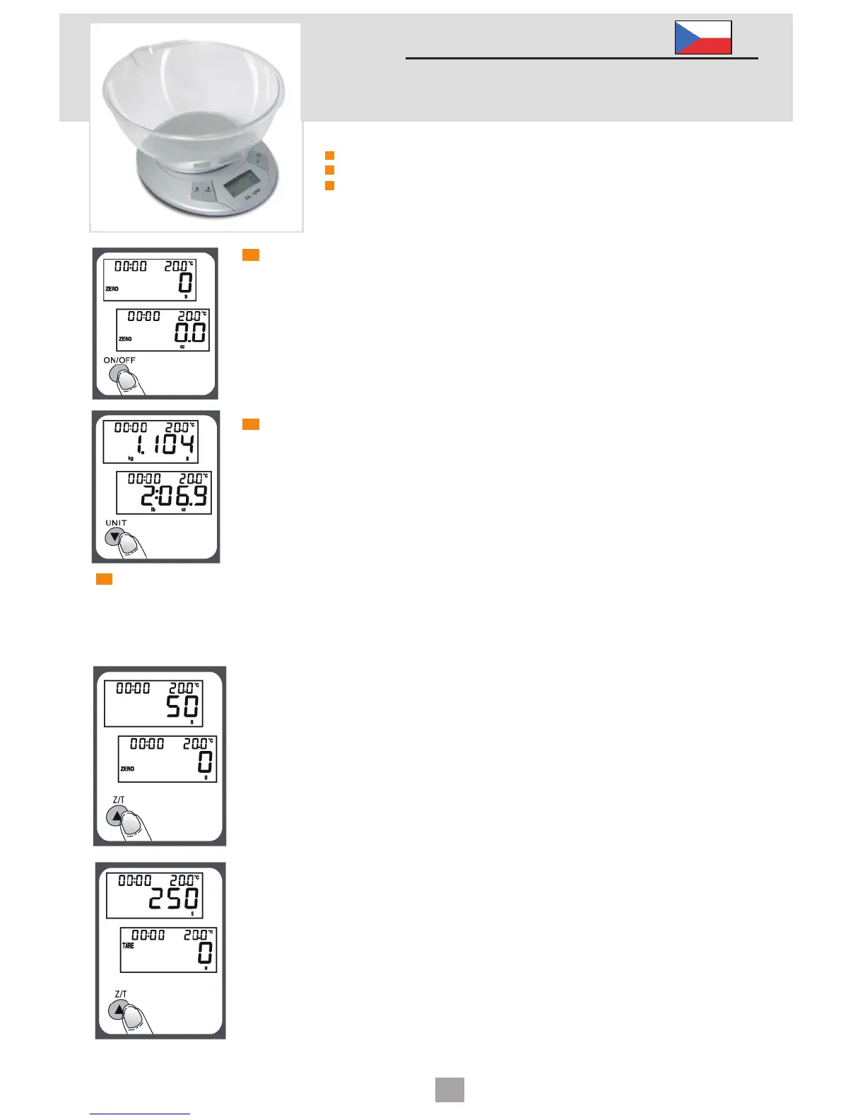 produkt, zobrazí se jeho hmotnost. Stiskněte tlačítko „Z/T“, čímž dojde kvynulování ukazatele.