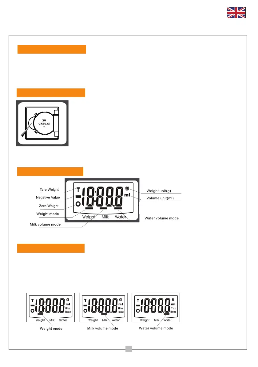 6. If the weighing object is water or milk, pres [MODE] button to choose volume and view the volume