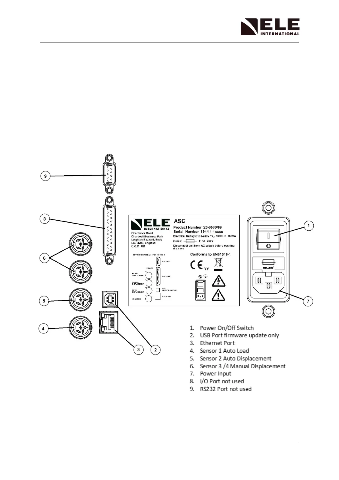 rated at 1A T. The AC mains supply must be connected to the AC input (item 7) using one of