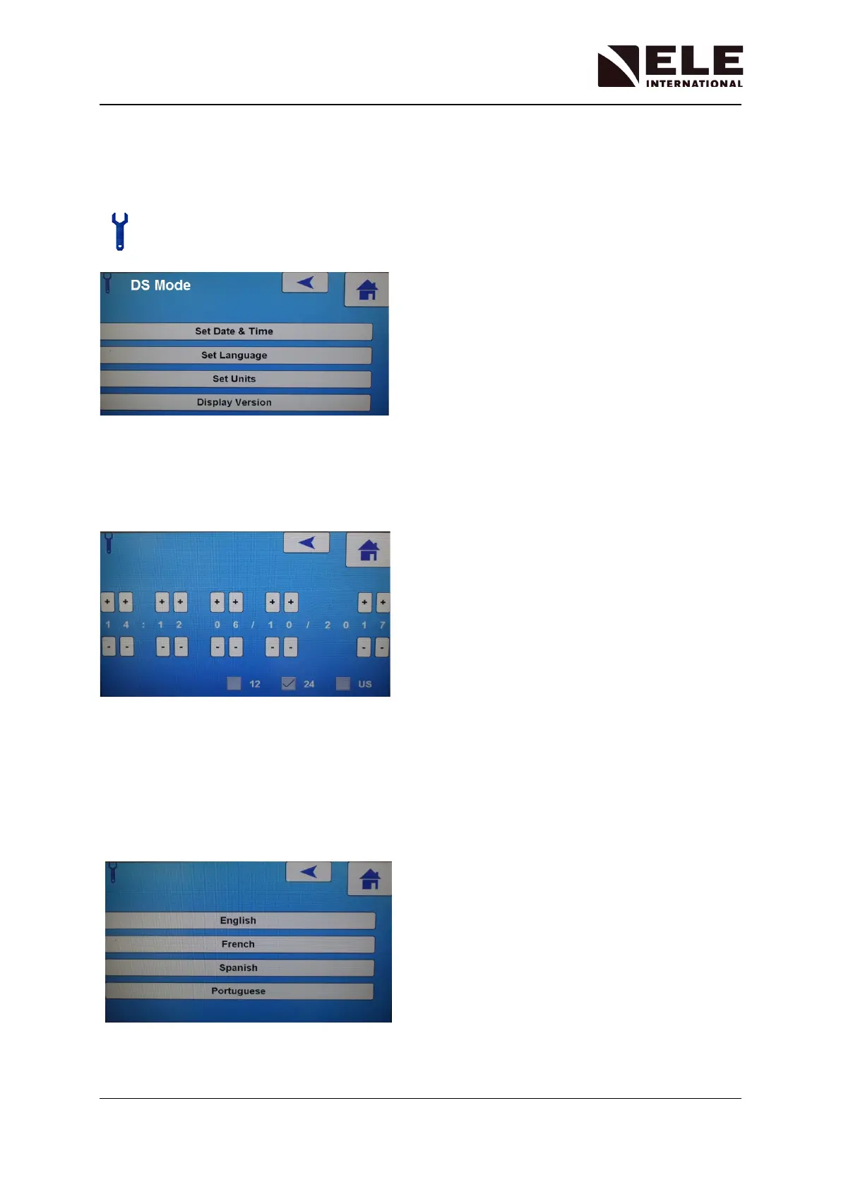 The operating language can be changed by selecting Set Language and choosing from one
