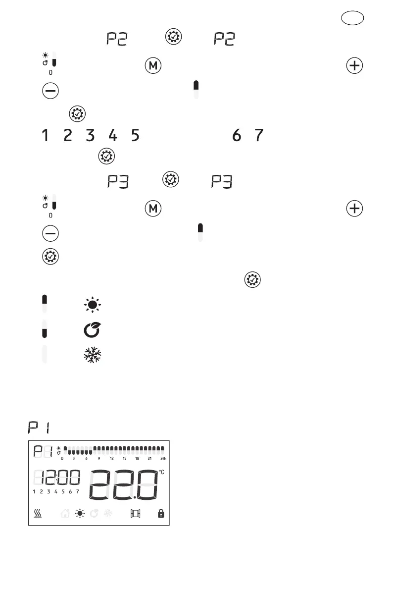 program setting. When finish 7 days setting press to confirm and quit.