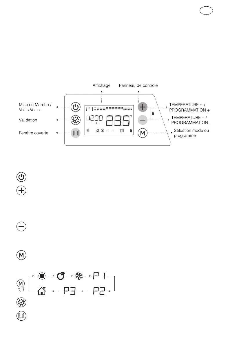 la température. Ce bouton permet également de sélectionner les plages horaires lors