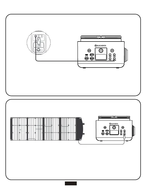 ソーラーパネルから充電する時、①と②ポートは使用不可となりますのでご了承ください。
