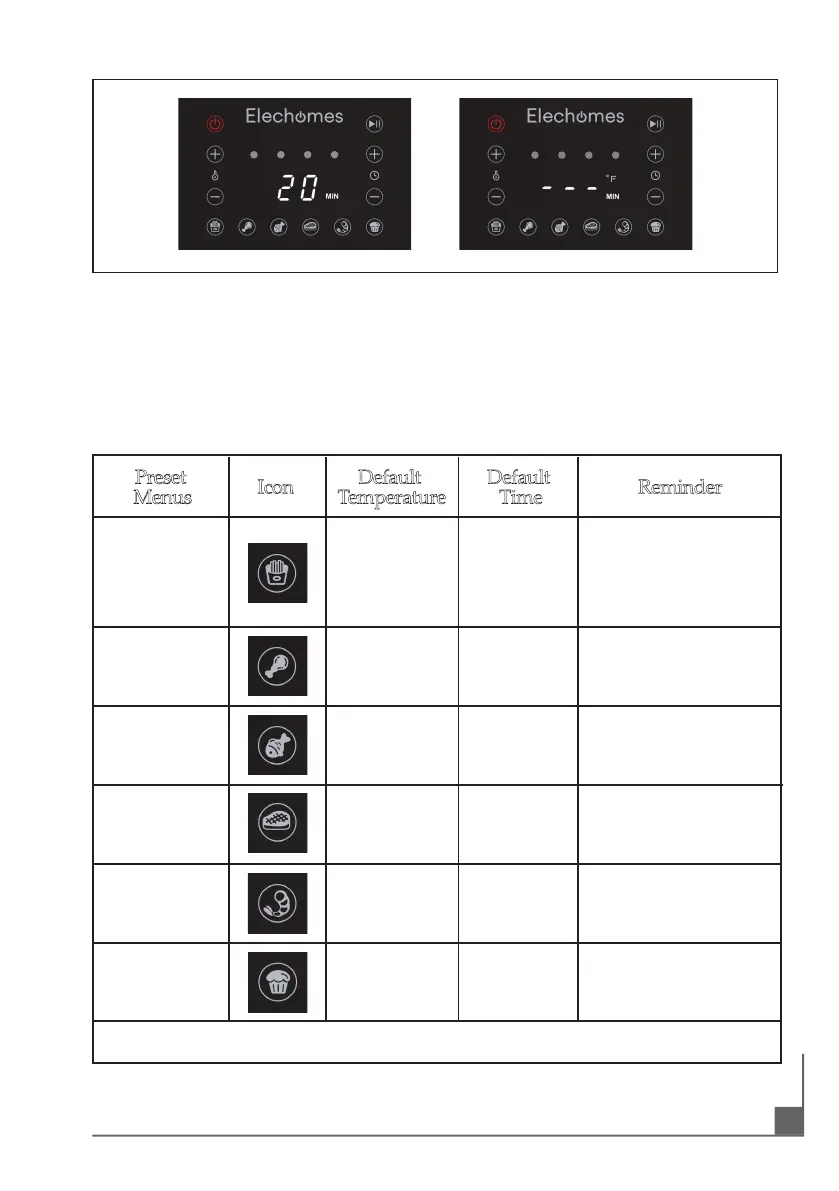 Using the pre-programmed buons is the easiest way to air fry. Preset menus