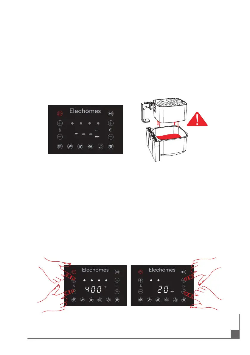 3. Push the baskets into air fryer and connect the device to power. The LED
