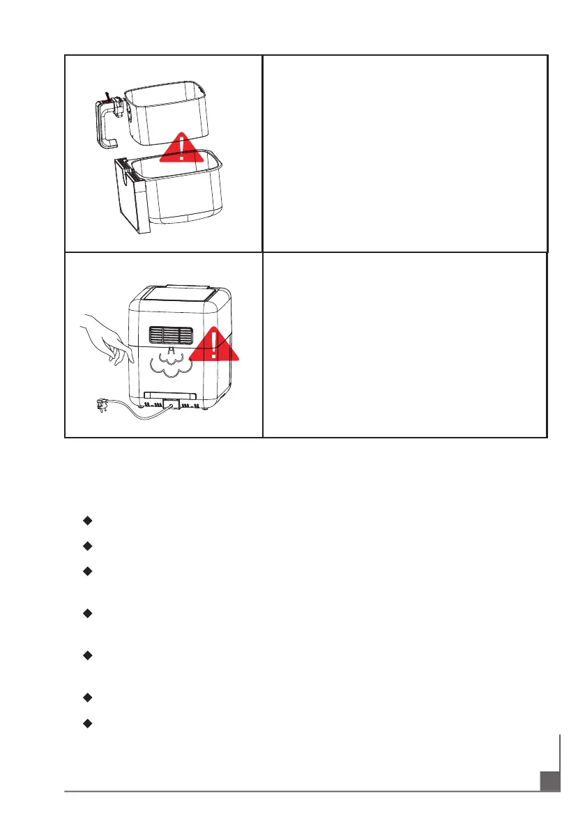 Do not immerse the air fryer housing or power plug in water or other liquid.