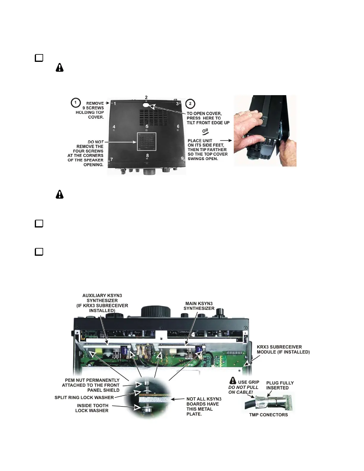 RF board on bottom of the K3 and is held in place with two screws at the top. Loosen the screws and tip the