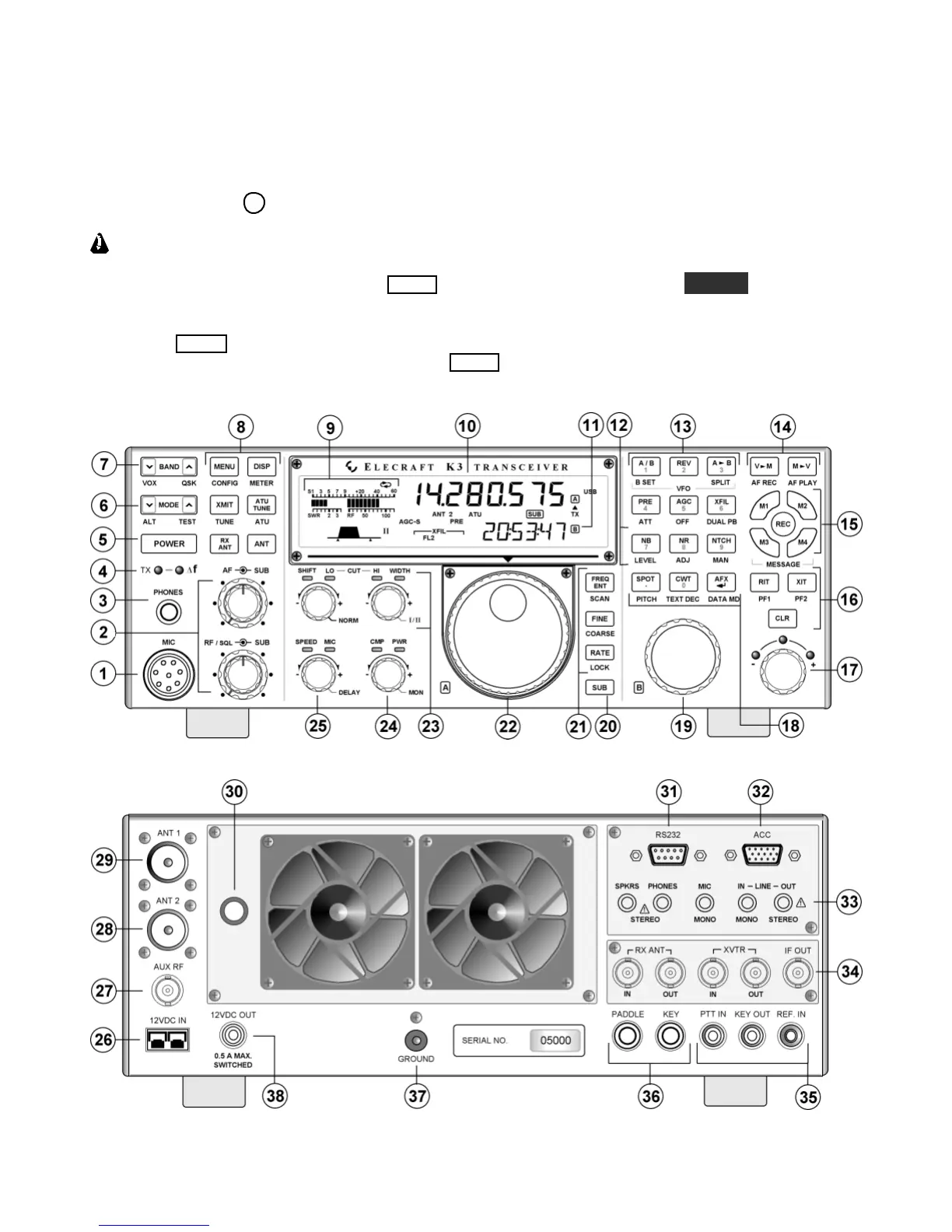 , the mic jack. Later sections provide greater detail on all aspectsof K3 operation.