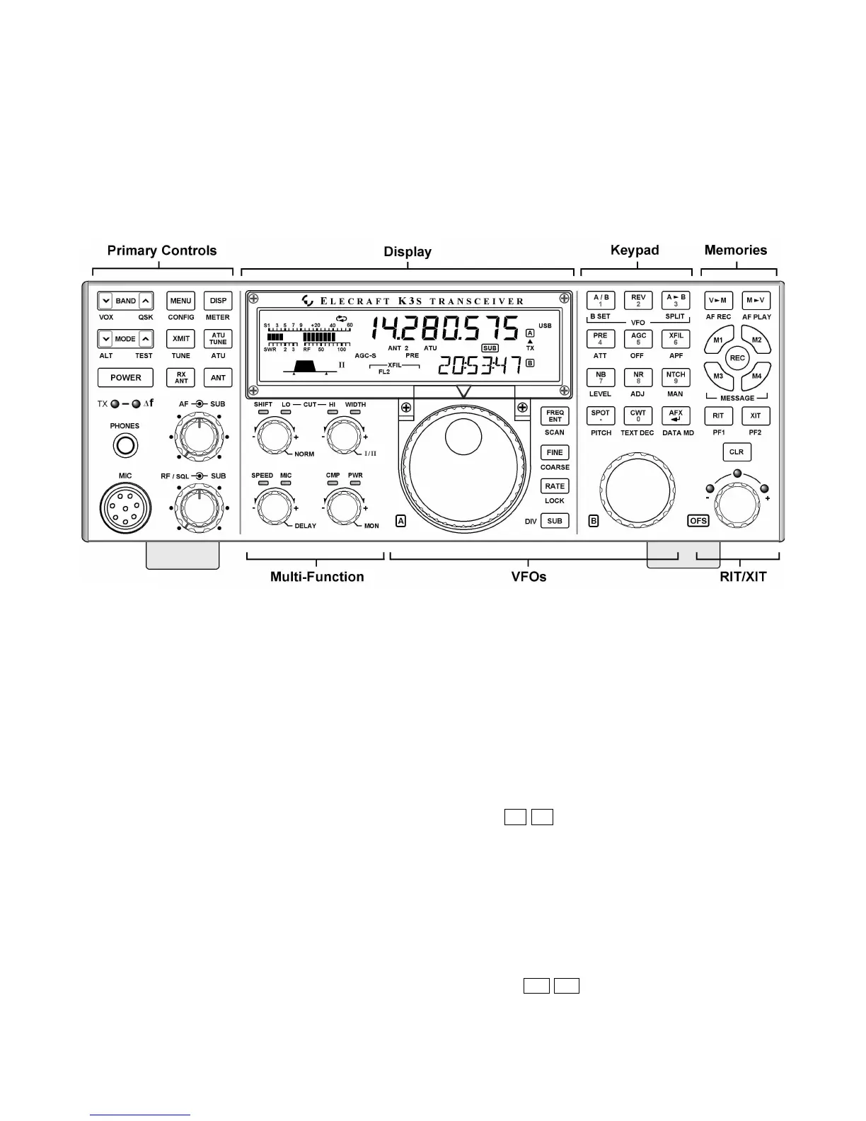 XIT on/off and clear (offset zero). The OFS knob