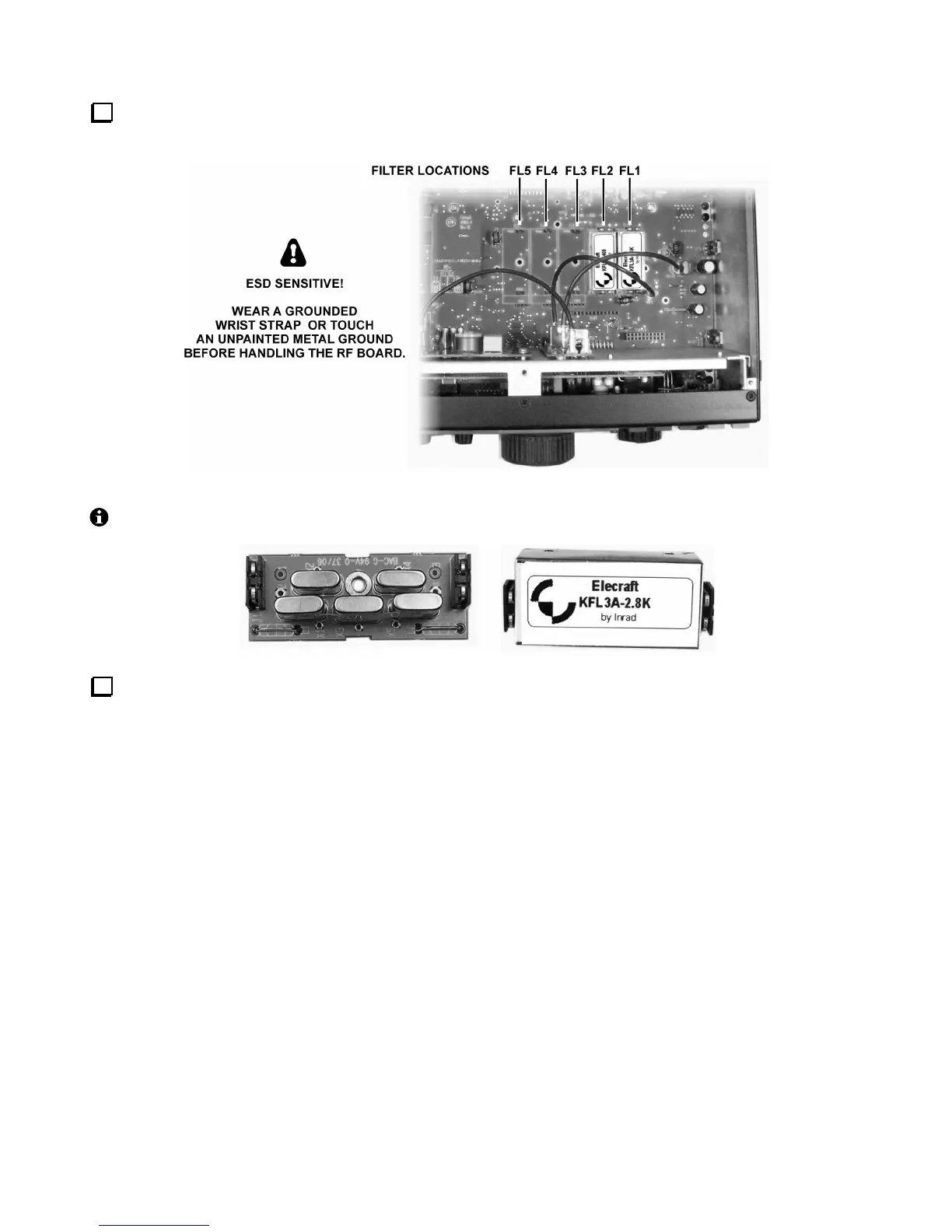 You can install up to five crystal filters (FL1-FL5) on the RF board, and five on the sub receiver (KRX3A). FM