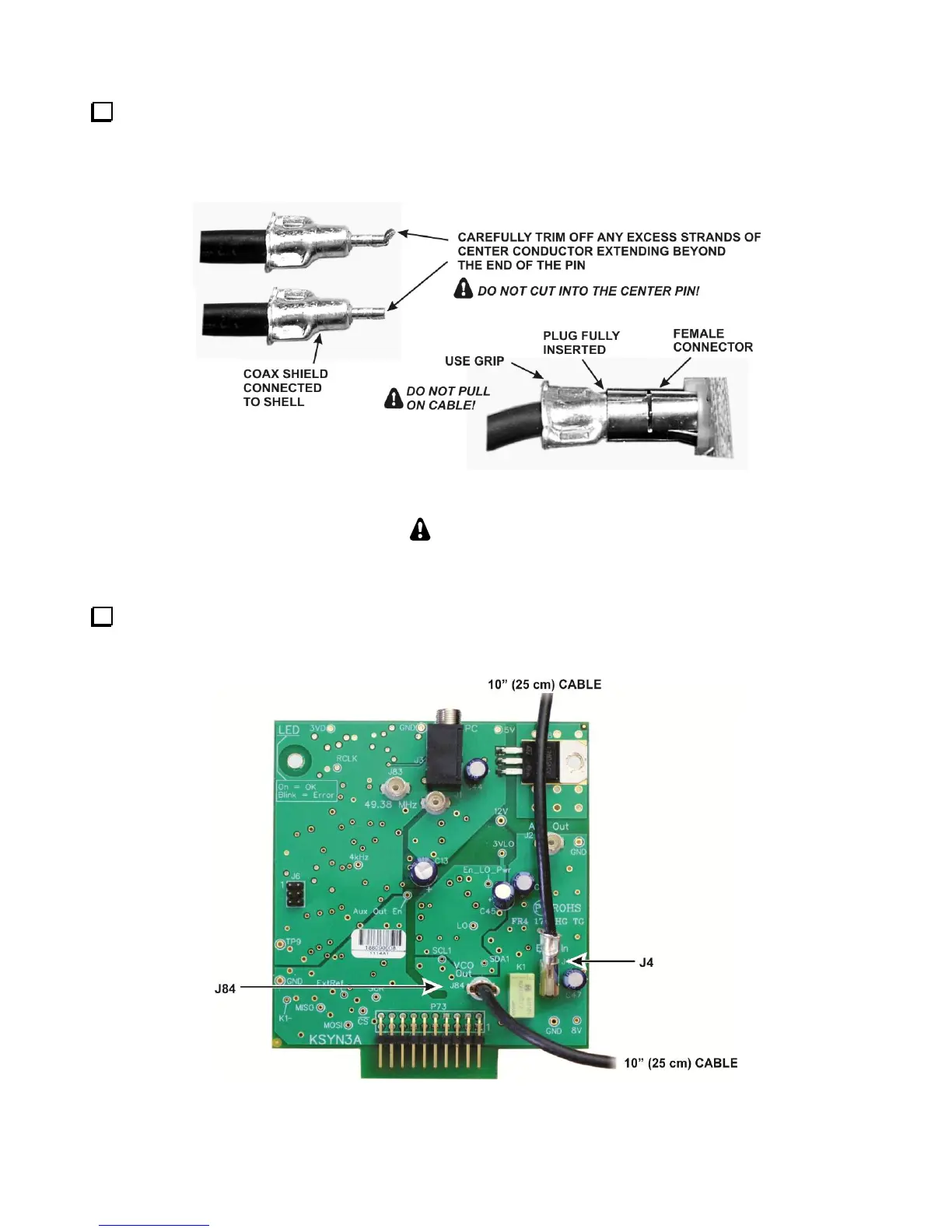Plug one end of a 10” (25 cm) cable into J84 and one end of a second 10” (25 cm) cable into J4 near the