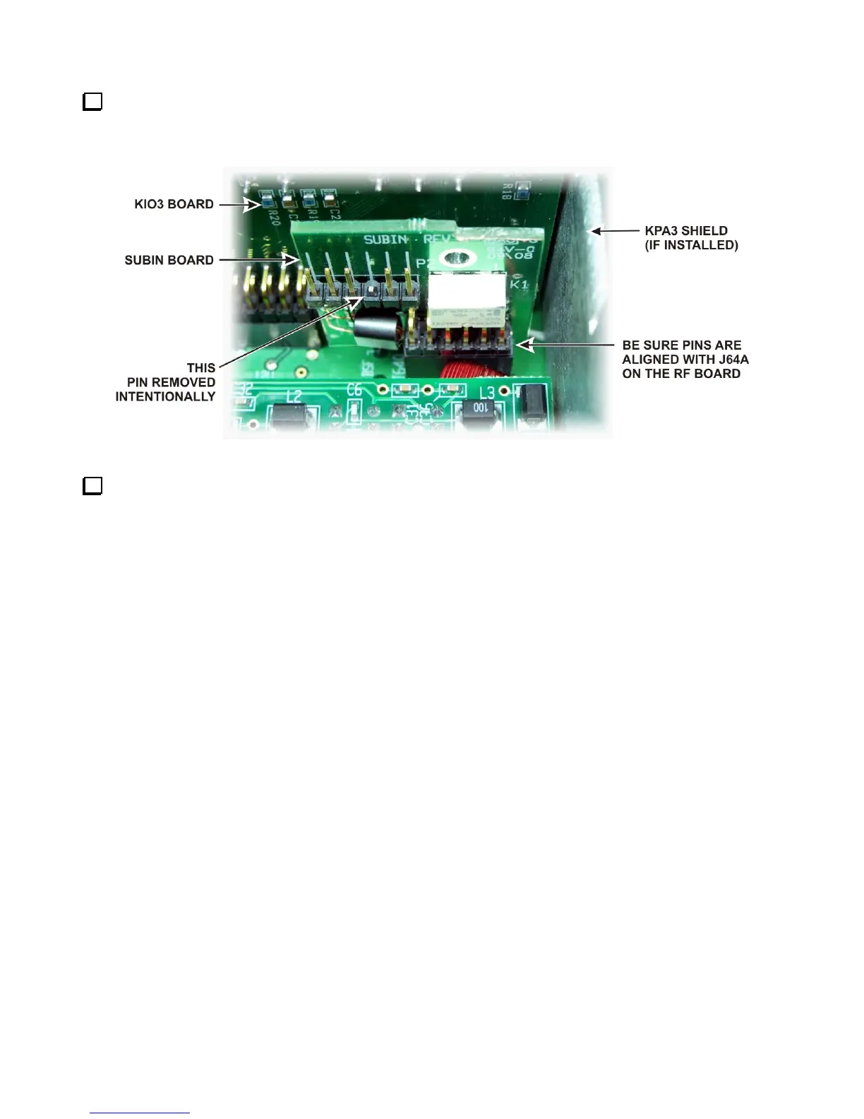 Plug the SUBIN interface board into J64A on the K3 RF board as shown in Figure 46. J64A is directly in