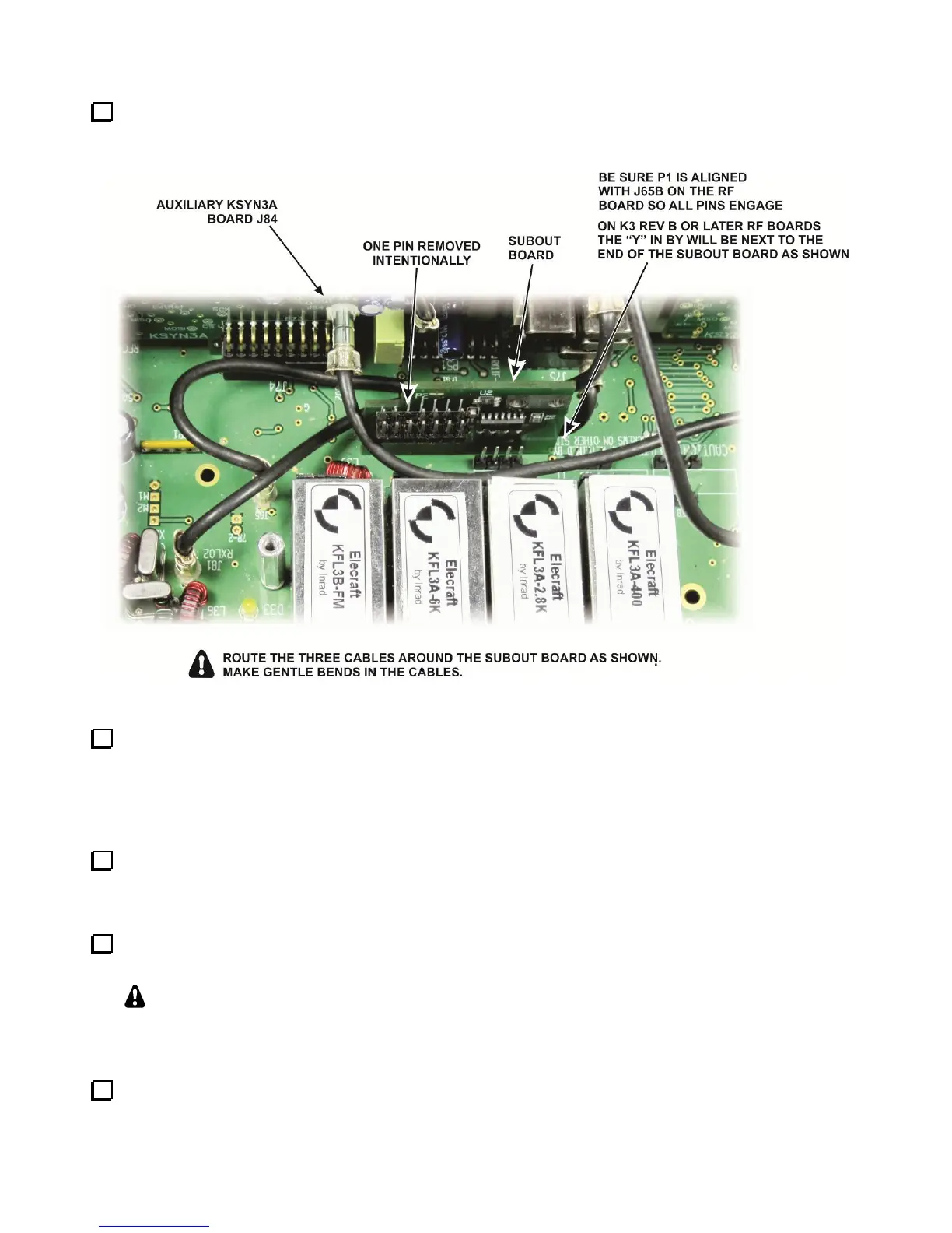 K3 roofing filters and the front panel. Be certain the SUBOUT board is aligned so all pins of P1 are engaged