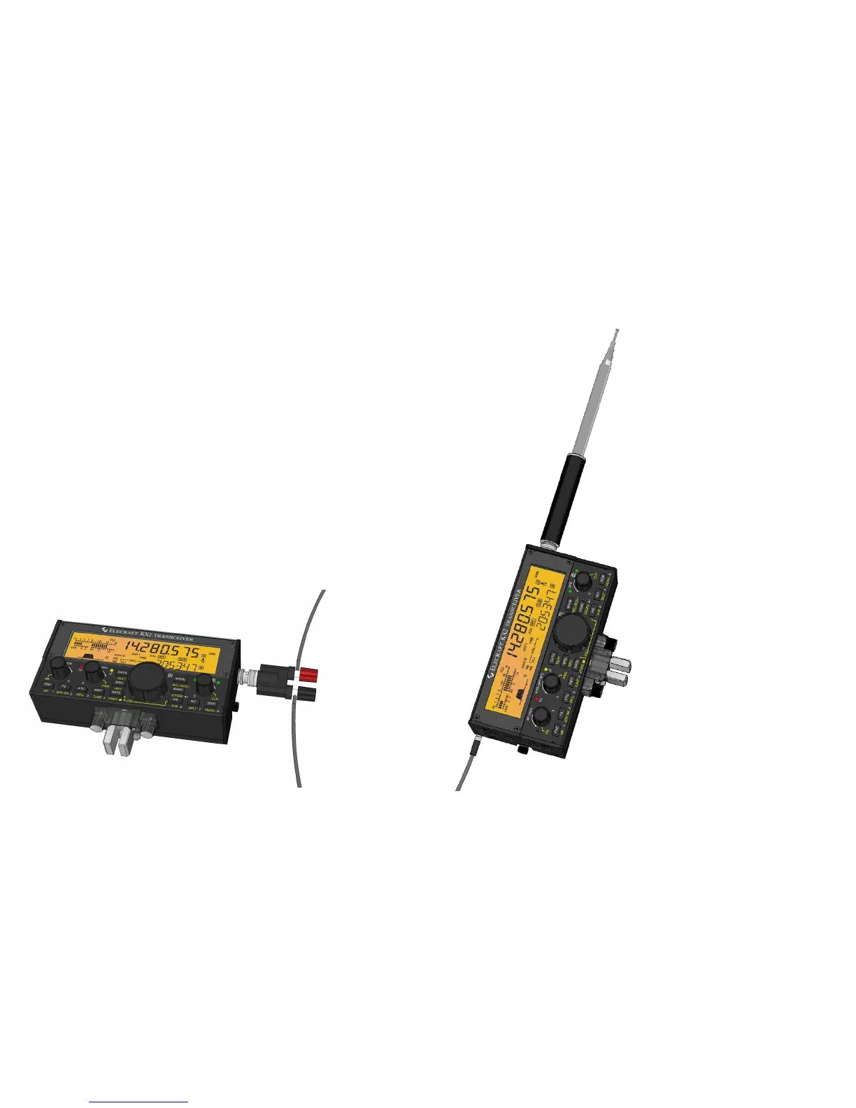 At right, a KX2 is shown in hand-held orientation