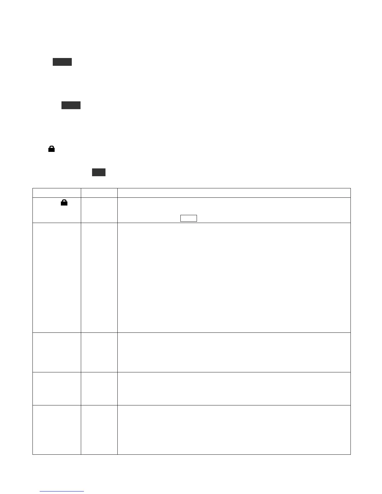 in the table below indicates a tech mode menu entry. These are typically used for calibration,