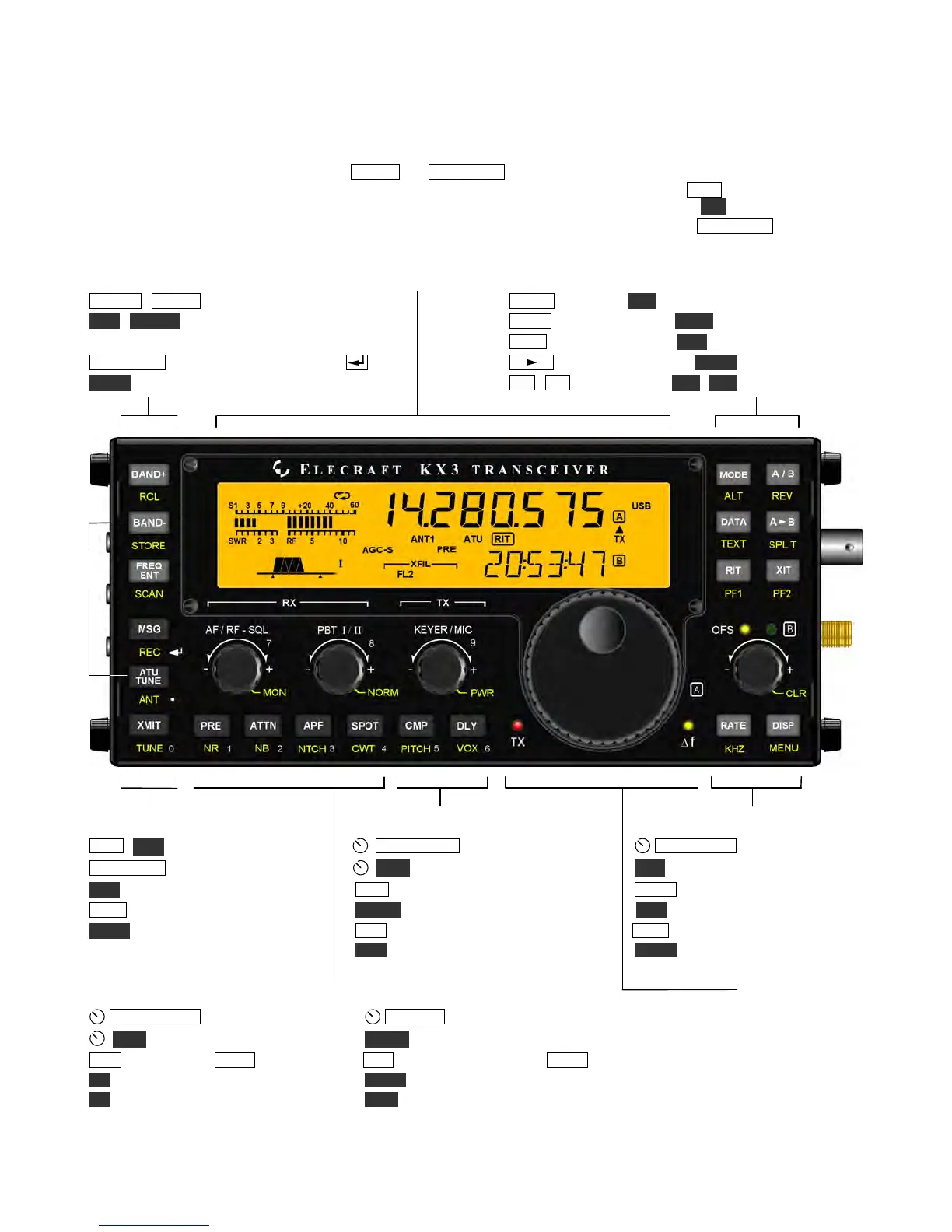 This section summarizes all KX3 controls. For details, see Basic Operation and Advanced Operating Features.