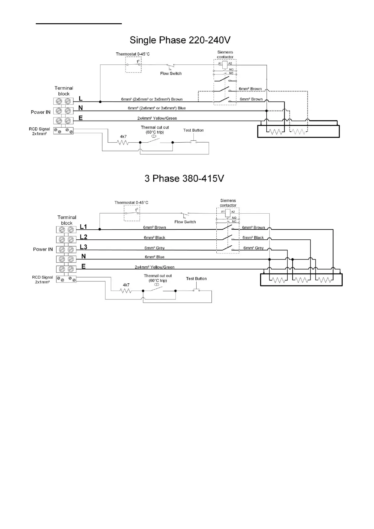 Elecro Engineering Cygnet Evolution 2 - WIRING DIAGRAMS; Single Phase Wiring Configuration; Three Phase Wiring Configuration
