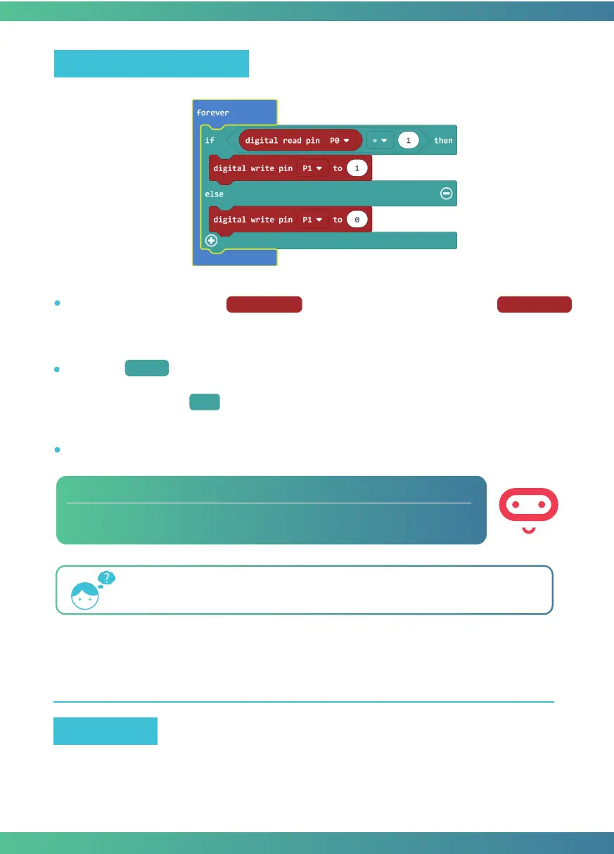 block check at the state of a pin, which is either HIGH (1) or LOW (0). In this case, we can detect if