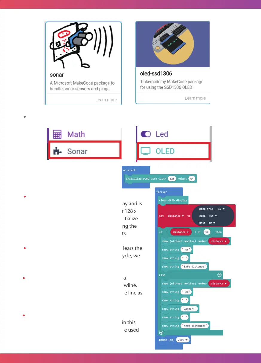 Step2: Add sonar and OLED packages to your Makecode and you can see it.