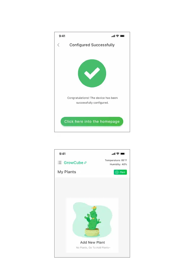 • 5. Click "Click here into the homepage" to enter the Home page of the GrowCube APP and start