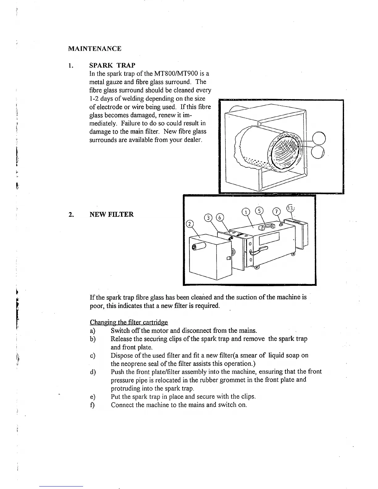 Electac MT800 - Maintenance Procedures; Spark Trap Care; Filter Cartridge Replacement