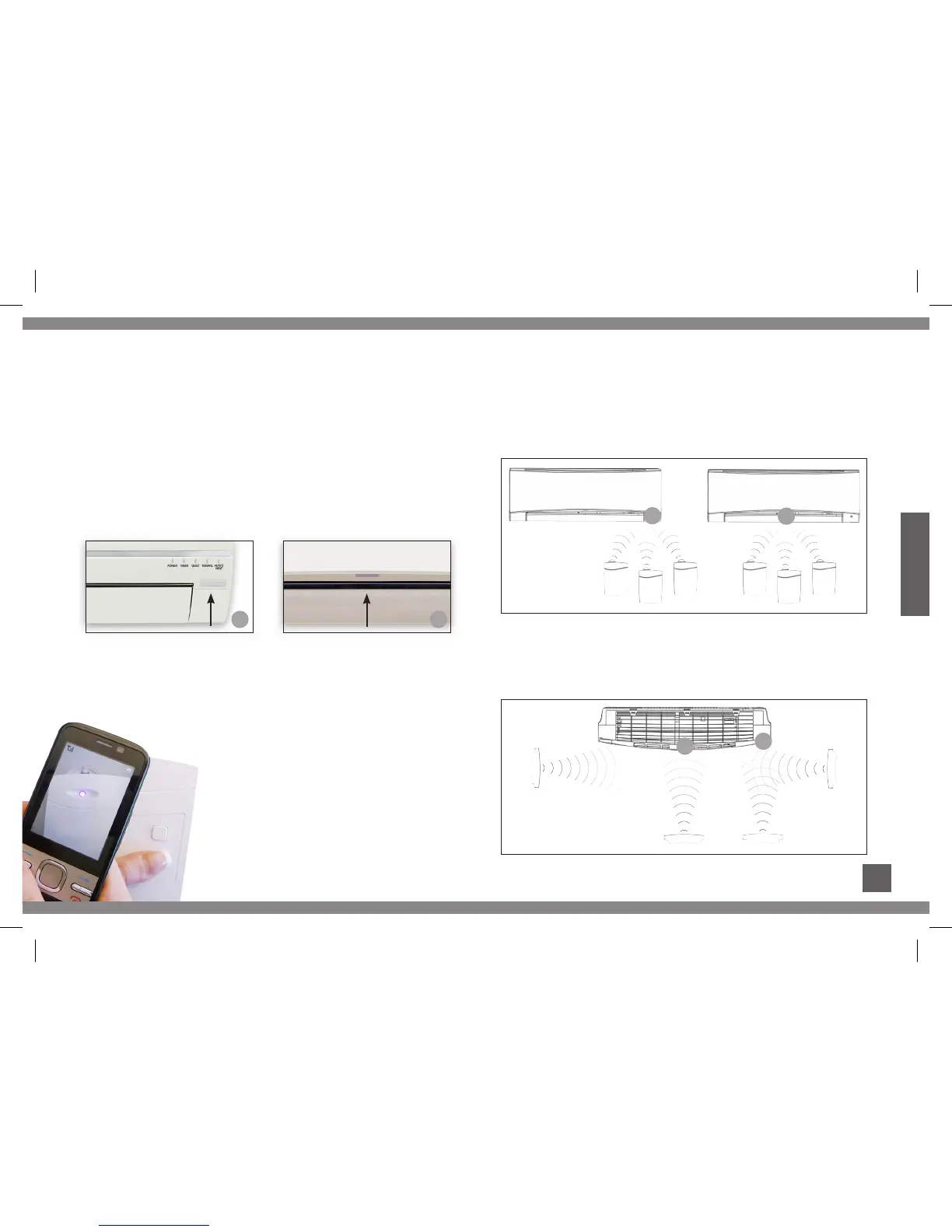 förhållande till värmepumpens inomhusdel. Beroende på var IR-mottagaren är placerad på