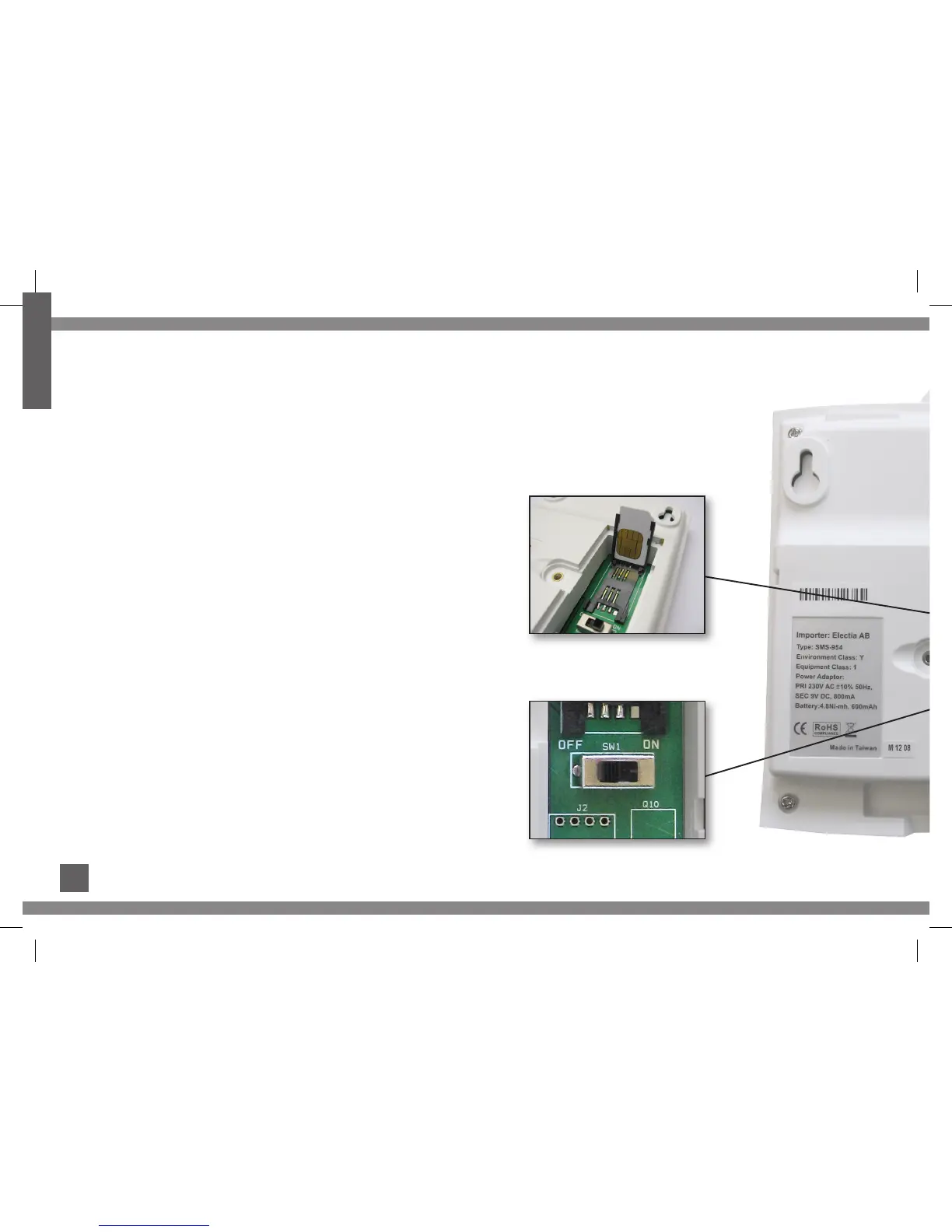 NB: If a “pay as you go” SIM card is used in SMS-954, it must be topped up with money.