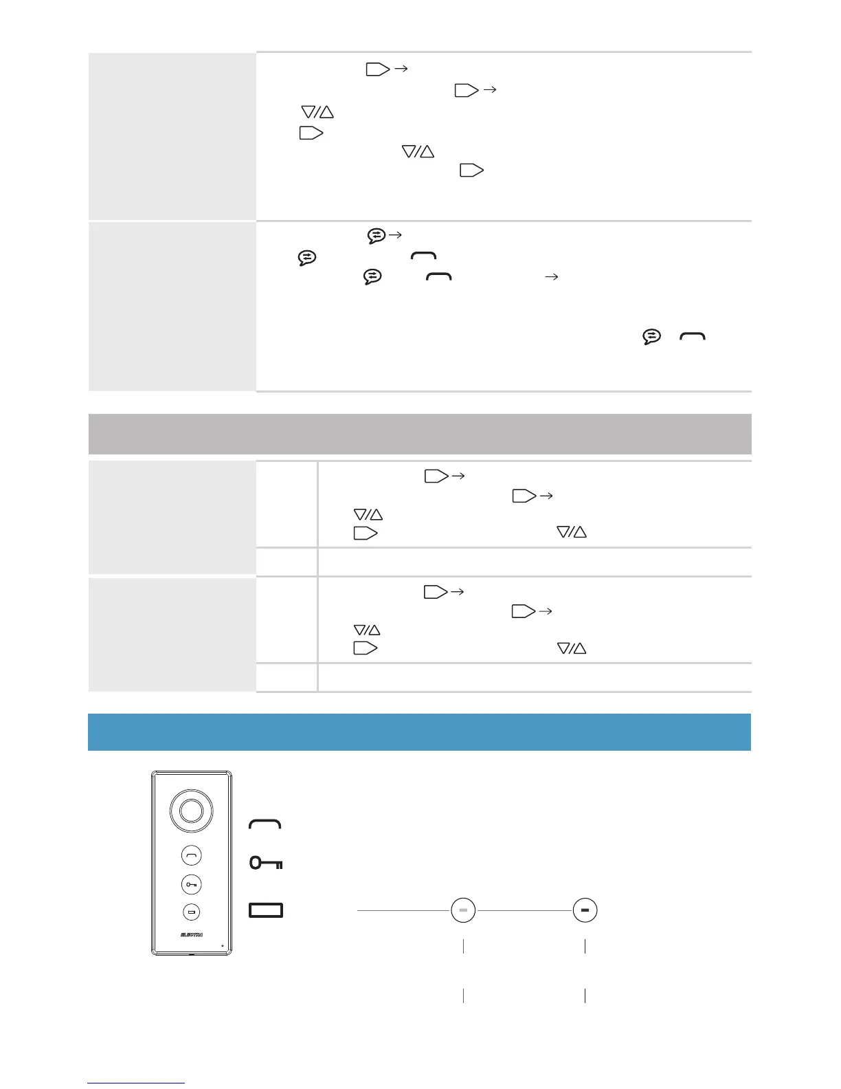 The key (7”) or the key (3.5” or audio) blinks white. For answering,
