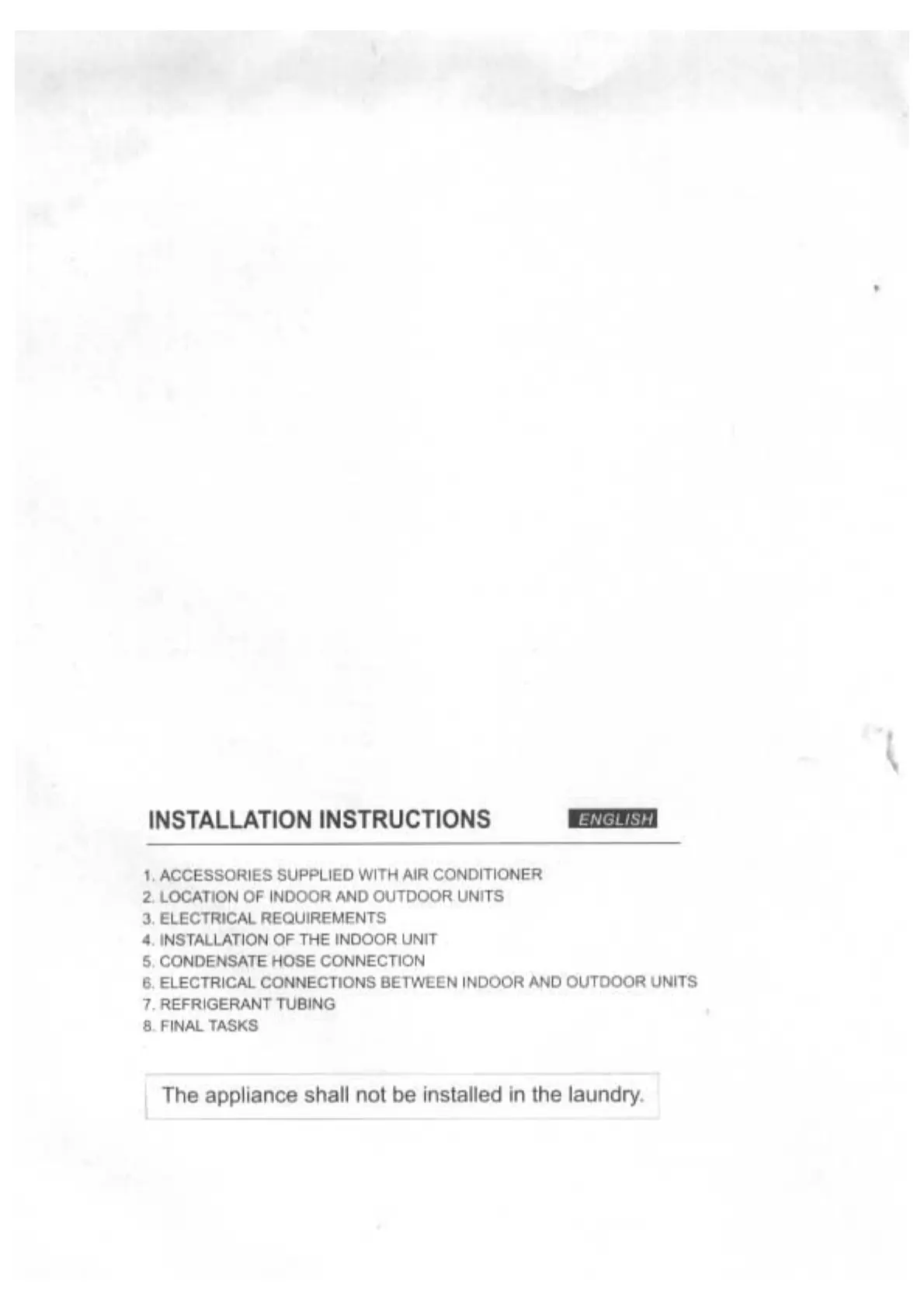 Electra COMPACT 9 - Installation Instructions; Location of Units; Electrical Requirements; Indoor Unit Installation