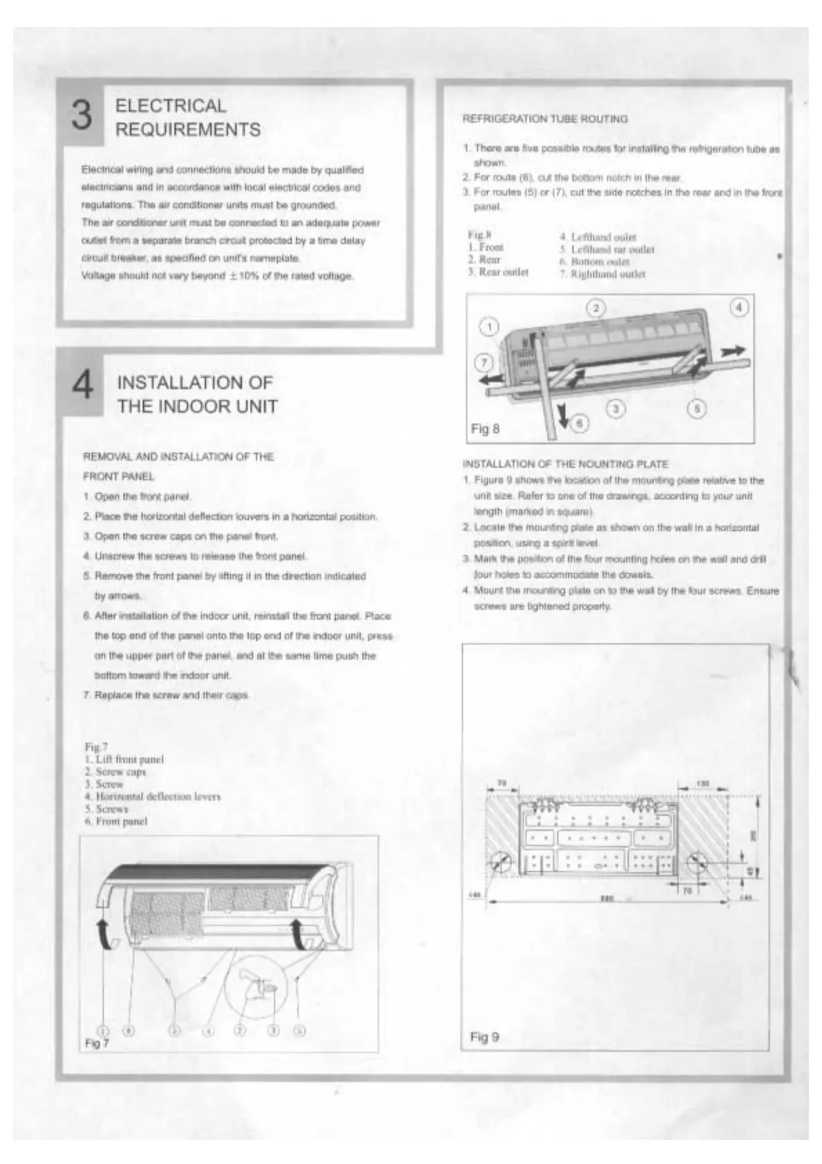 Electra COMPACT 9 - Installation Procedures; Electrical Requirements and Indoor Unit Panel