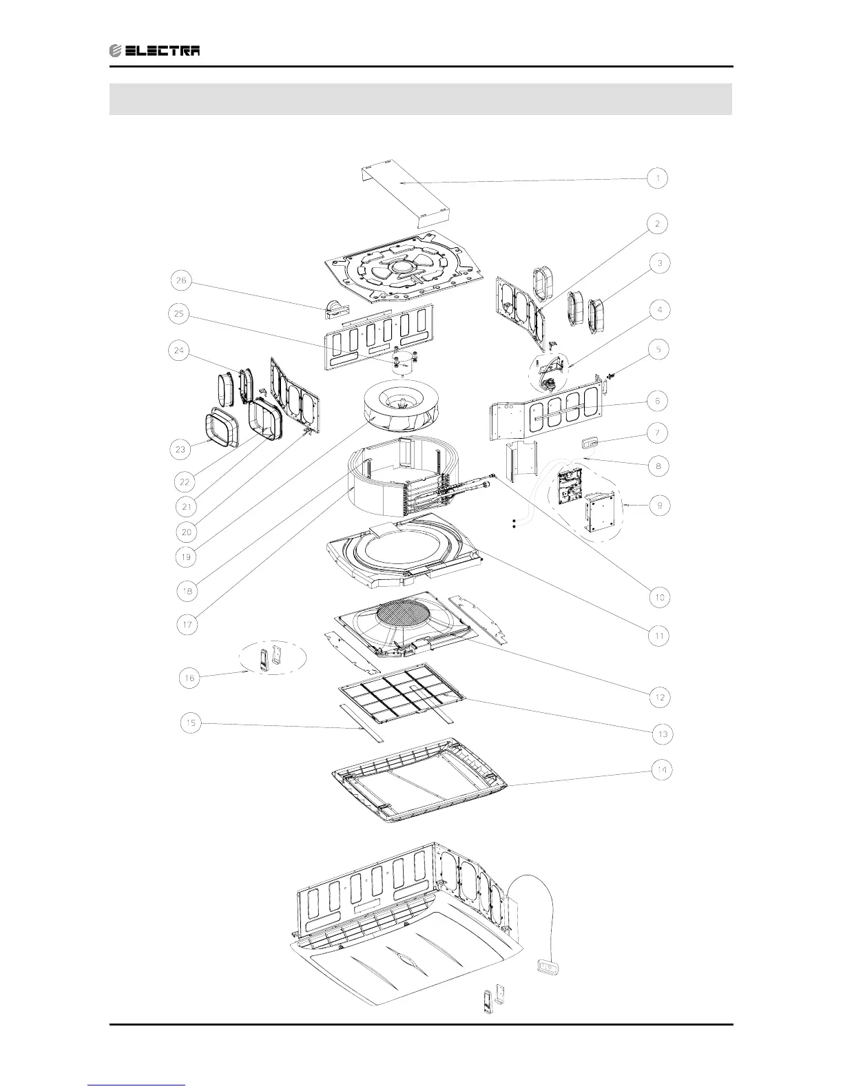 Electra DNC series - EXPLODED VIEWS AND SPARE PARTS LISTS; Indoor Unit Exploded Views and Parts