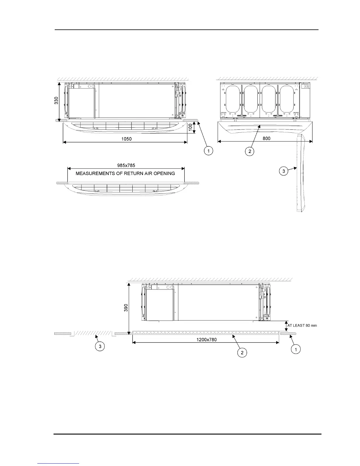 ceiling to the distance of 80 mm, at least, below the unit.