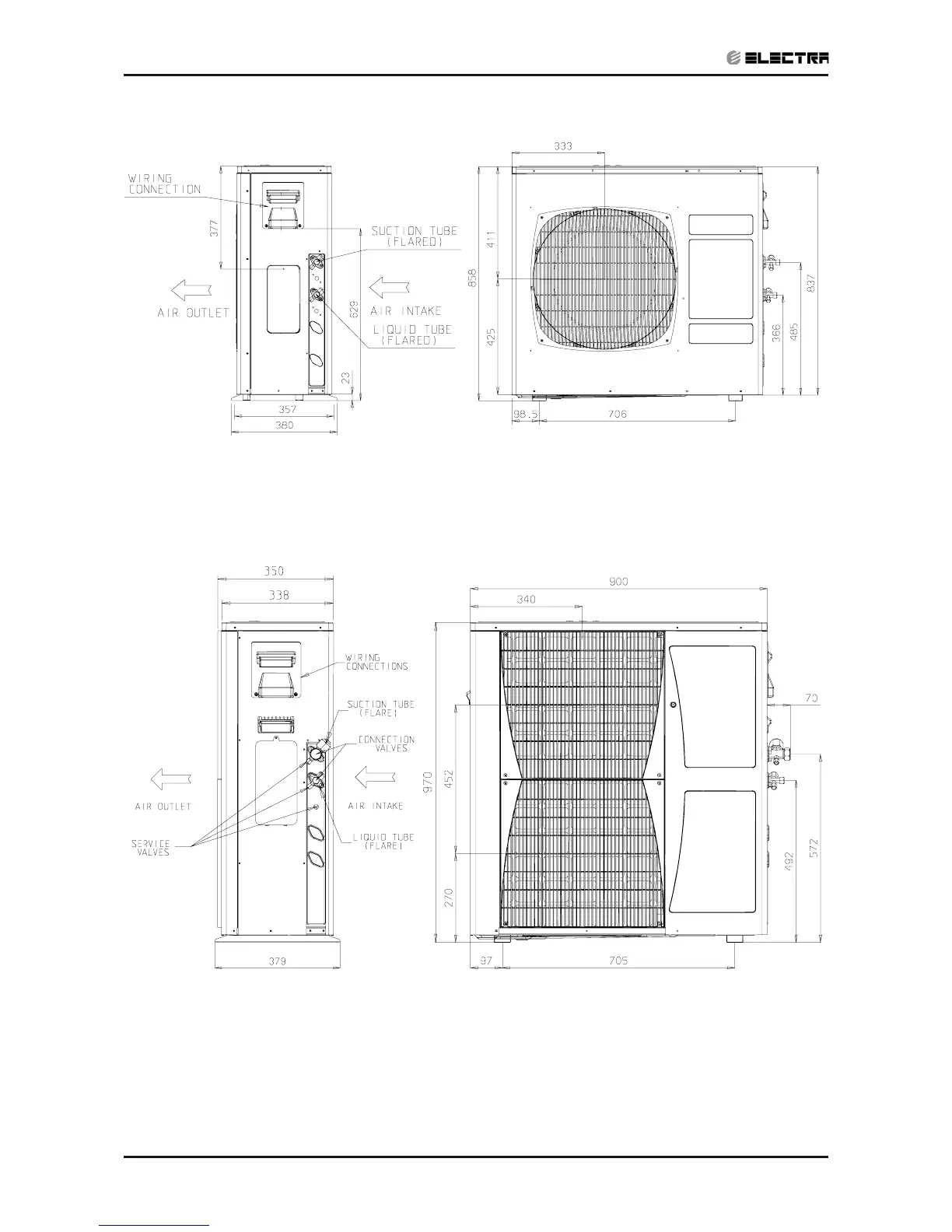 Electra DNC series - Outdoor Unit Dimensions