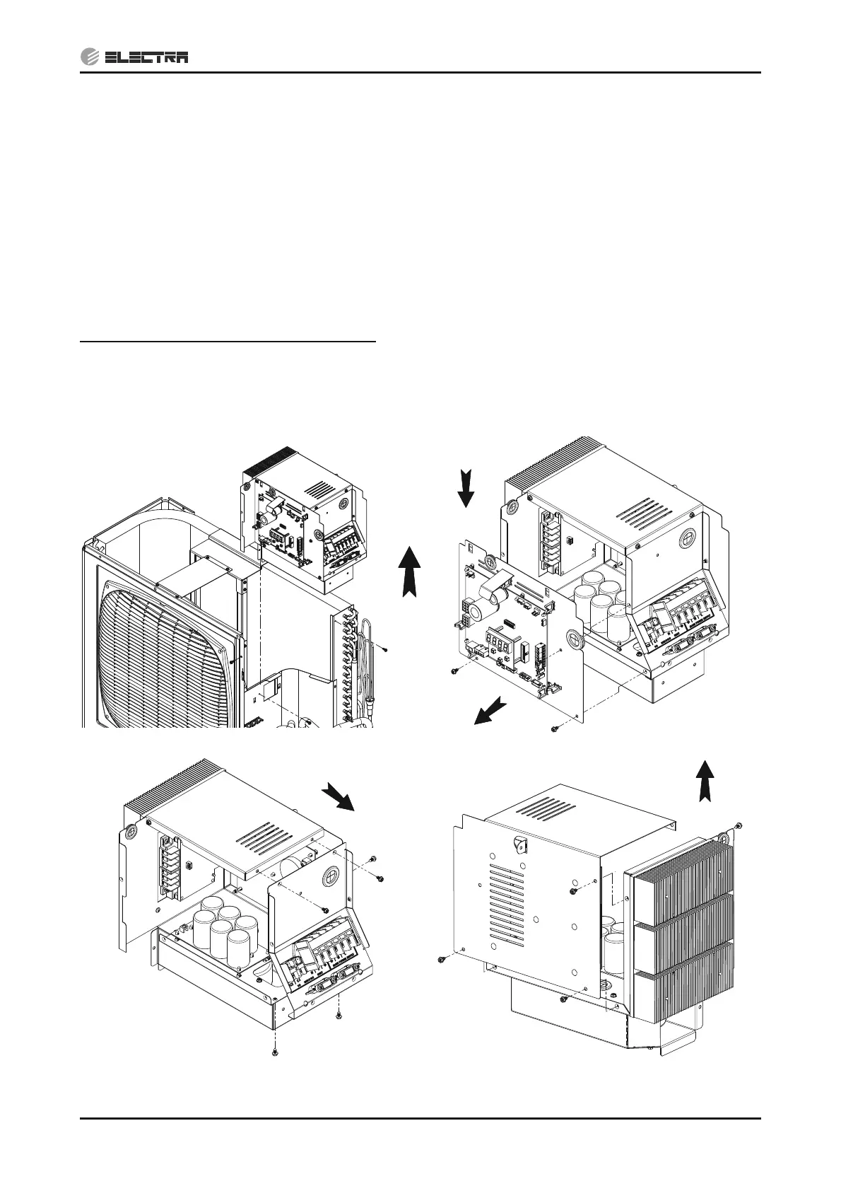 7. Remove the three (3) screws fixing the electrical box to the front fan panel, the partition and the