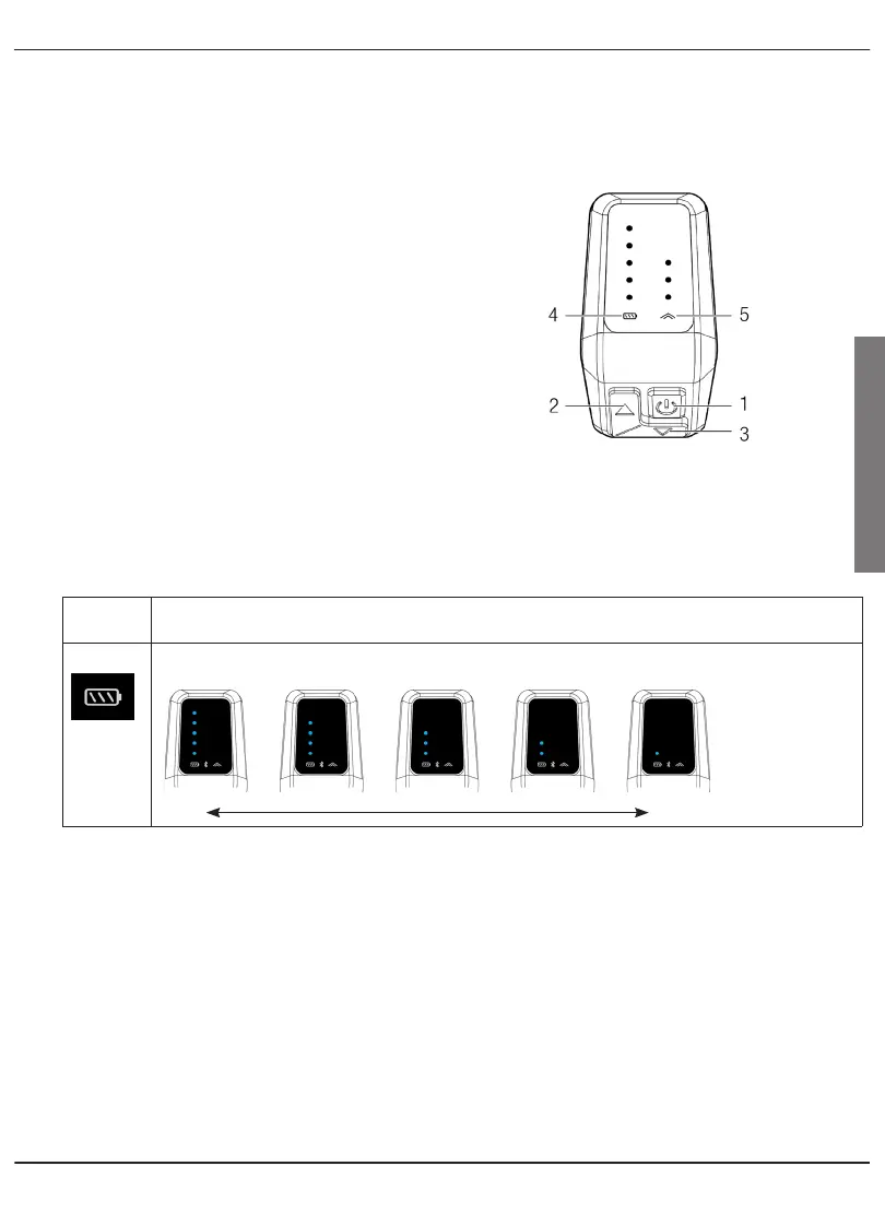 Lorsque les 5 voyants sont allumés, la batterie est complètement chargée.