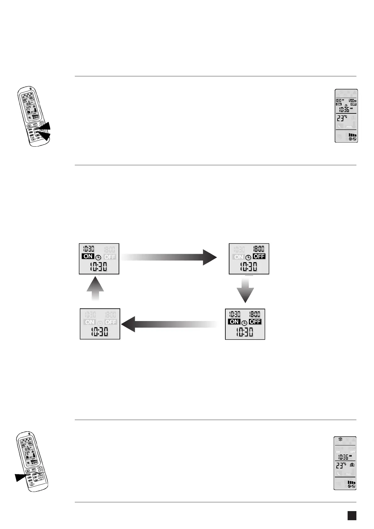 Press TIMER select button (10) to activate the timed operation mode. Each