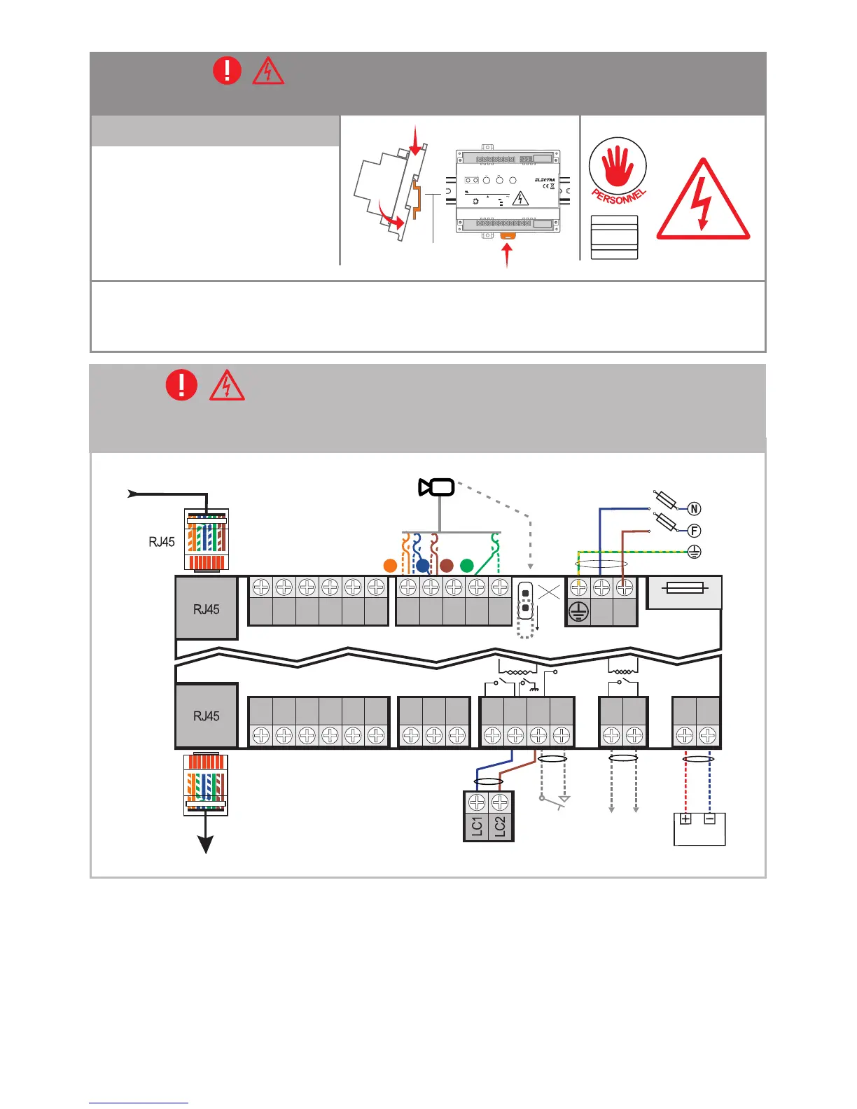 Electra SMART+ - Central Unit (SCU); 5.5.1. SCU.VDR02 (Video); 5.5.1.1. Installation of the Central Unit; 5.5.1.2. RJ45 Connections